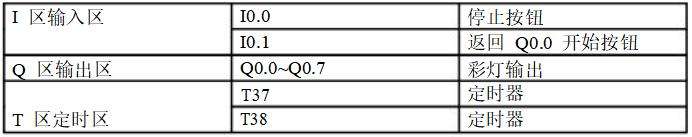 利用PLC的Q0.0到Q0.7八个输出端控制八个彩灯,使其每隔一秒亮一个并循环。当接通I0.0后所有的灯都熄灭。当接通I0.1后又重新从Q0.0开始循环。