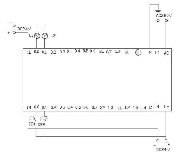 把编写好的程序下载到s7-200的PLC中进行调试。当I0.0为OF时,PLC运行手动程序按下在线控制面板上的置位按钮I0.1f和I0.2f 即表示(I 0.1和I0.2闭合)灯L1和L2亮,Q0.0 和Q0.1有输出。当我们按下在线控制面板上的I0.0f时,此时I0.0为ON,此时程序跳转到自动程序运行。两个灯每隔一秒循环亮。先L1亮一秒后L2亮。当在按下在线控制面板上的 I0.0f后即此时I0.0为OFF程序跳转到手动程序运行。